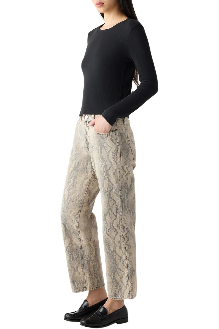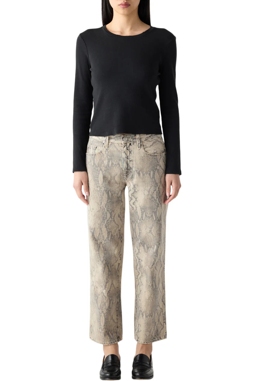 This cropped, wide straight leg is our easiest fit yet. Cut from premium rigid denim with a mid rise, this pair is meant to sit low on the hips for a relaxed look. Thoughtful distressing throughout. Zip fly.
