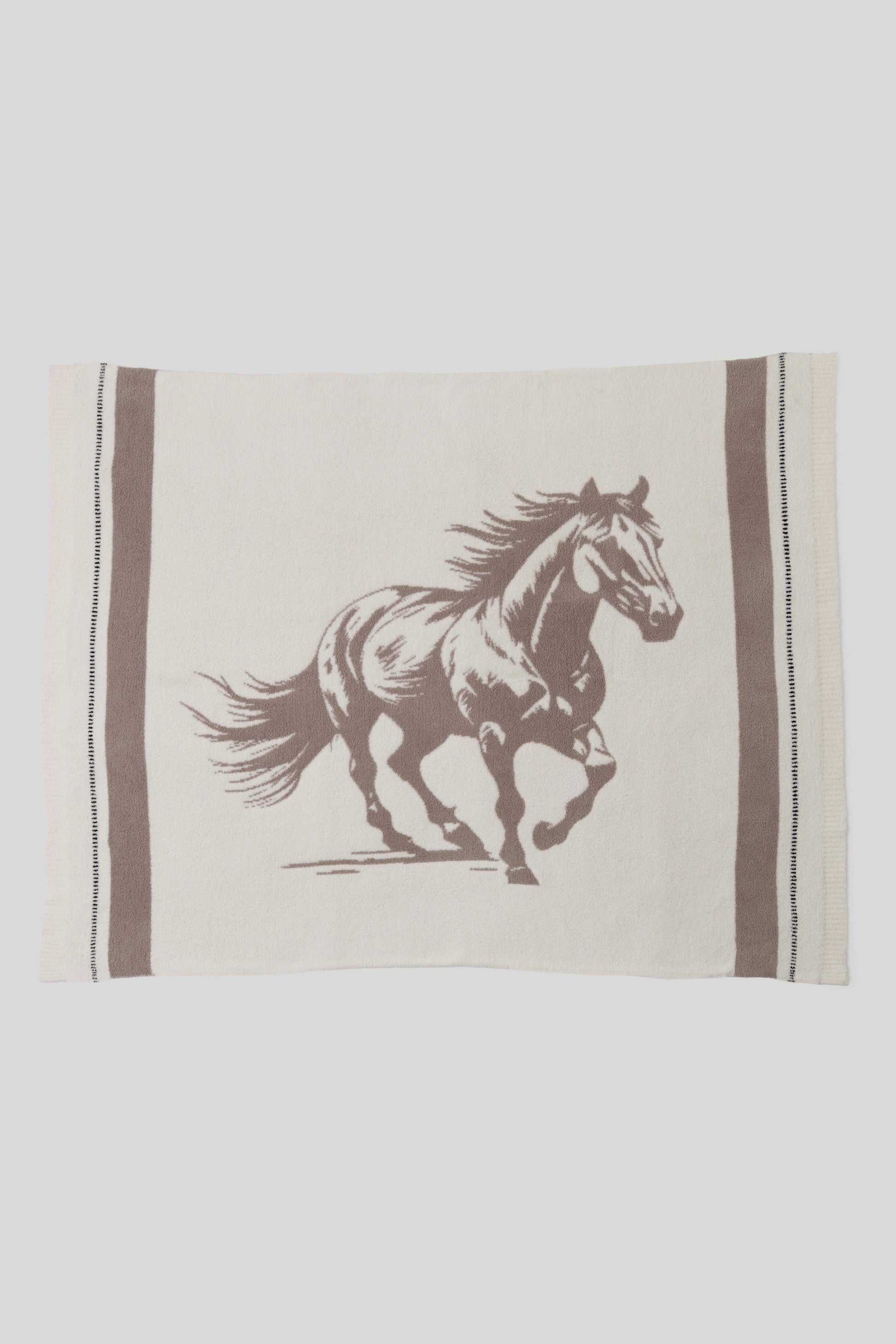 Add a bold yet refined accent to your space with our CozyChic® Stallion Throw, where artistry and comfort meet in stunning silhouette. Knitted in luxurious jacquard, this throw features a striking stallion figure framed by graphic block stripes and subtle dashed line details at both ends. Perfect for equestrian lovers or those seeking a unique statement piece, the throw is finished with ribbed hems and crafted from our famously soft CozyChic® fabirc. Measures 54" x 72".