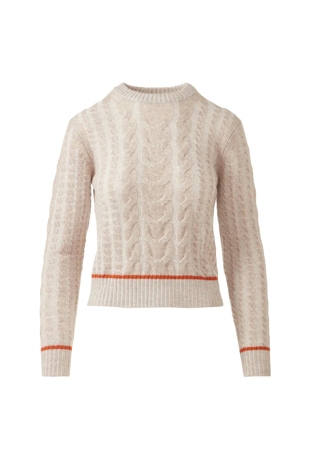 The unparalleled luxury of our Plaited Tipped Cable Crew, crafted from 100% cashmere for exquisite softness and enduring beauty. This elegant sweater, designed to fit true to size, offers remarkable versatility, effortlessly transitioning from sophisticated office wear to refined weekend ensembles.
