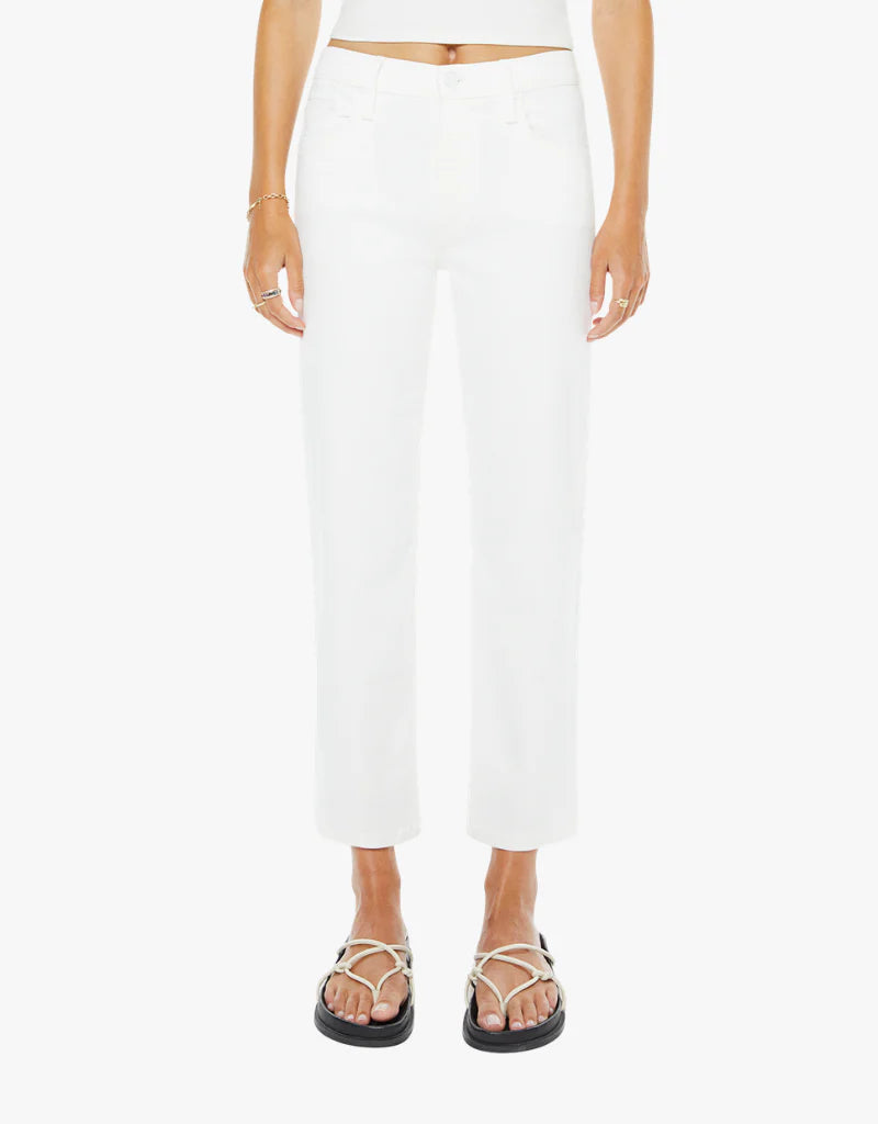 Mirror, mirror. High-rise jeans with a straight leg, zip fly and an ankle-length inseam with a clean hem. Made from stretch denim, Fairest Of Them All is our bestselling white.