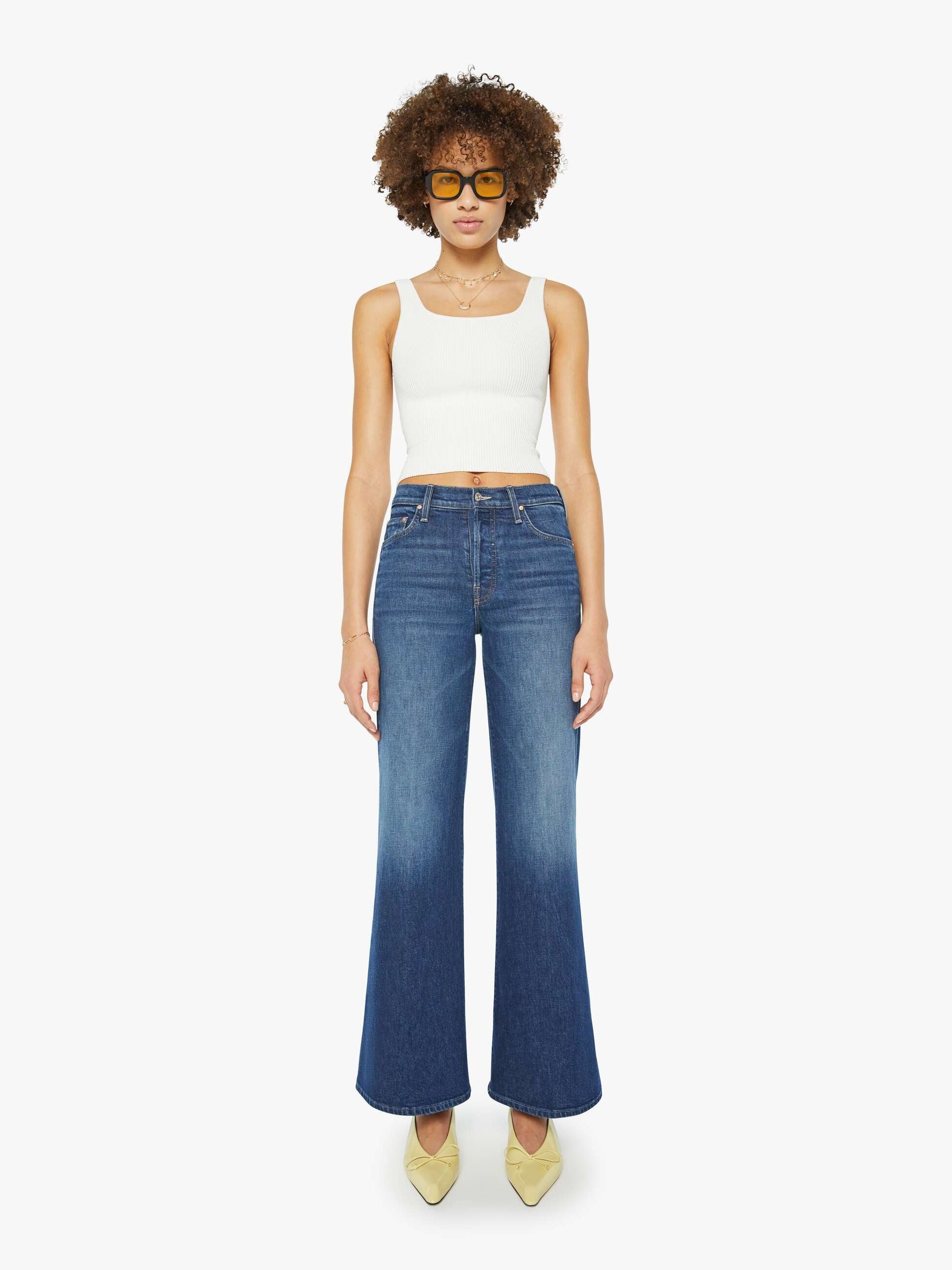 High-waisted wide-leg jeans with a button fly, 31-inch inseam and clean hem. Made from semi-rigid SUPERIOR denim, Perfectly Imperfect is a dark blue with whiskering and fading at the knees.